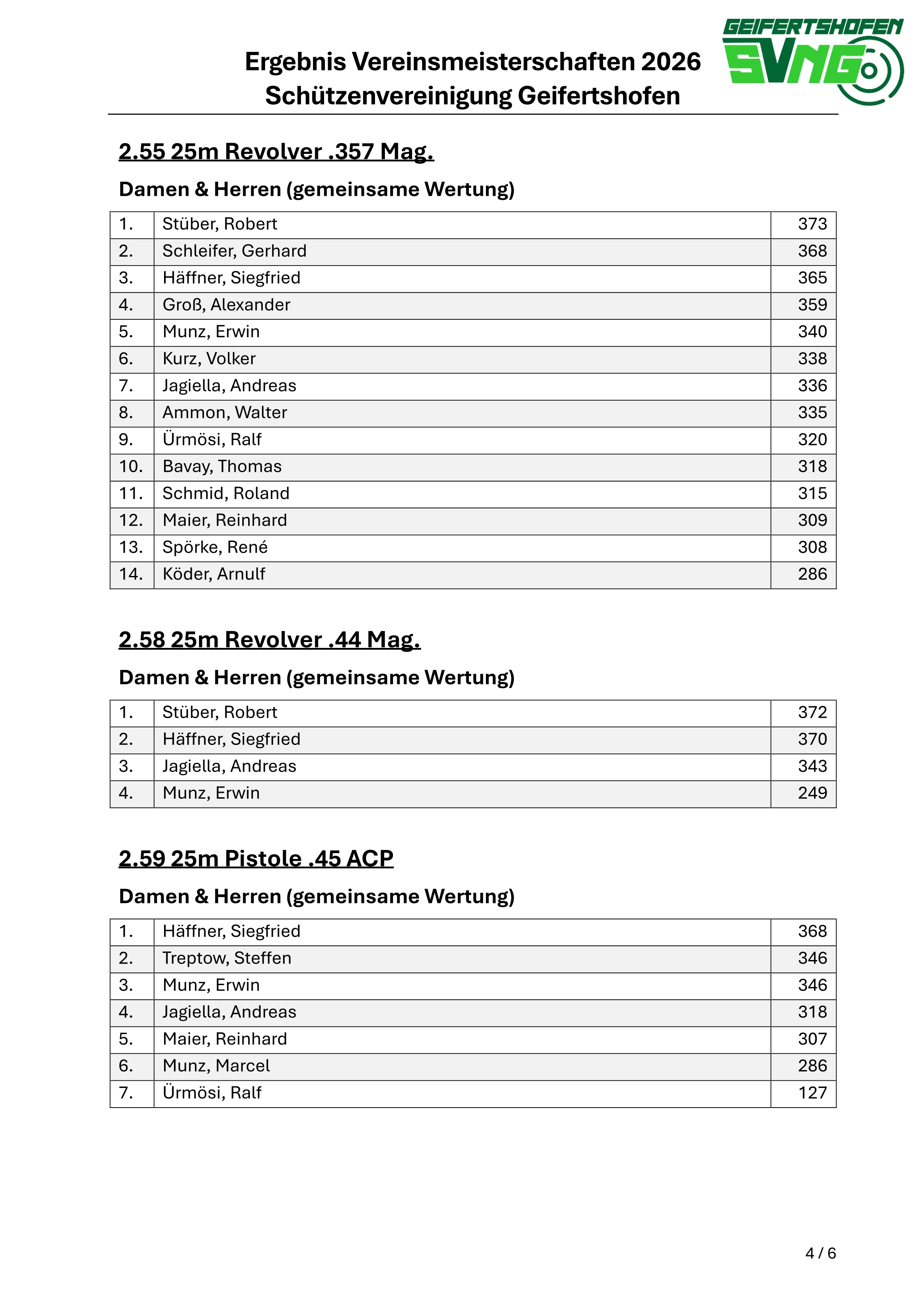 die Auswertung der Vereinsmeisterschaften 2026 ist abgeschlossen. Anbei findet Ihr die Ergebnisse.