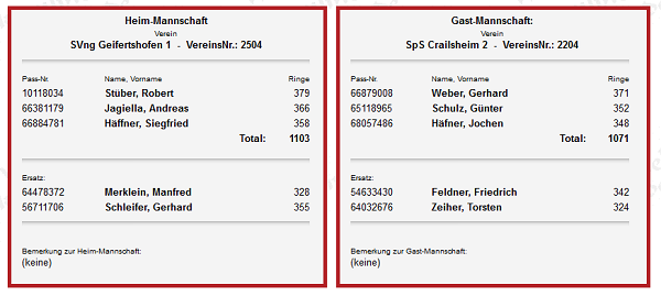 Die erste Mannschaft hatte in ihrem letzten Rundenwettkampf etwas mehr Erfolg und konnte sich mit 1103 Ringen zu 1071 Ringen