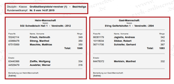 Beide Großkaliber-Mannschaften konnten ihren fünften Rundwettkampf absolvieren.