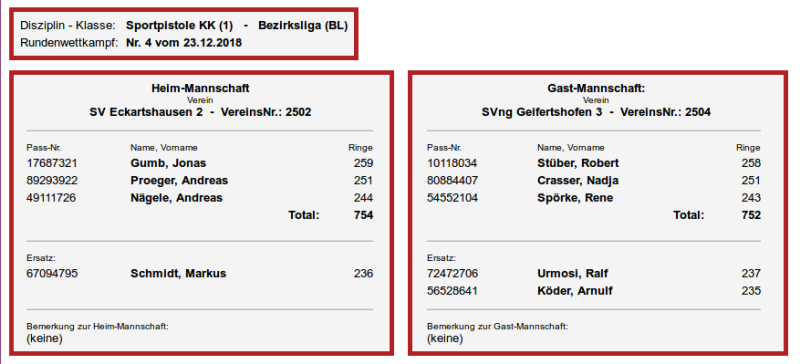 Mit ihrem Gesamtergebnis von 752 Ringen rutscht die Mannschaft nun auf Platz 7 in der Gesamtwertung der Bezirksliga, hinter die bis dato gleich auf liegende Mannschaft aus Michelfeld.
