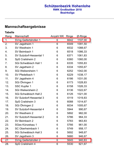 Die Endergebnisse der diesjährigen Großkaliberrunde des Bezirks Hohenlohe sind eingetroffen und einsehbar.