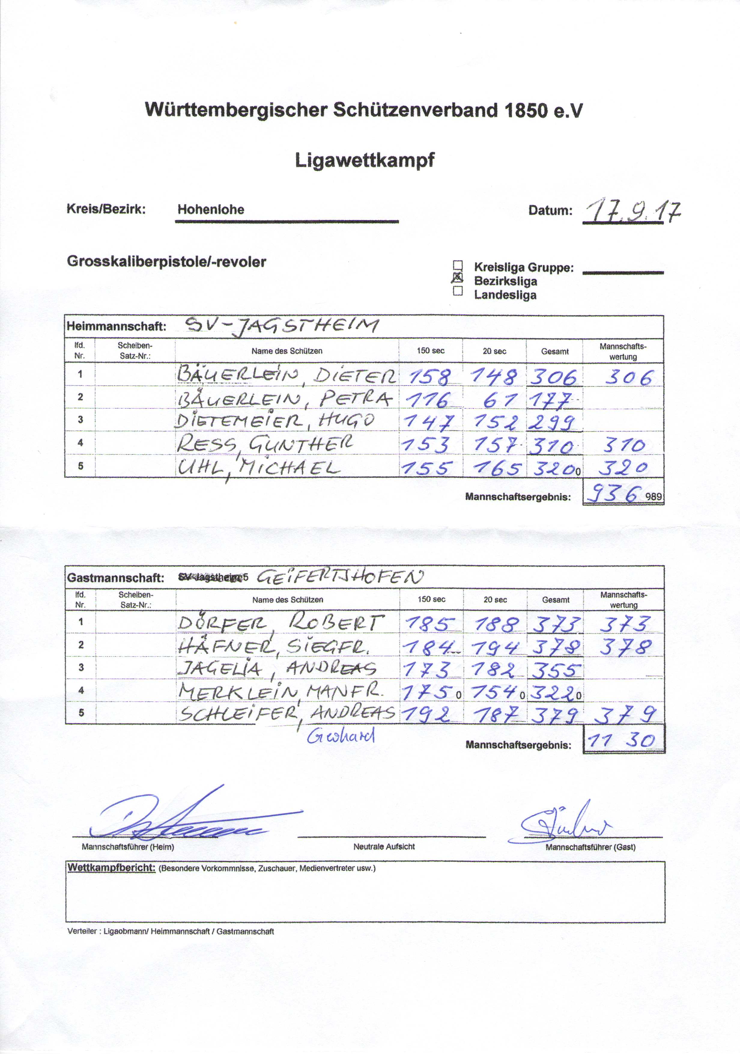 Unsere Großkaliber-Mannschaft konnte mit ihrem letzten Rundenwettkampf gegen SV Jagstheim 3 die Saison erfolgreich beenden.