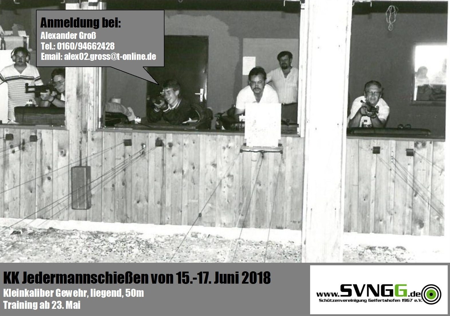 | Trainingsmöglichkeiten: | Ab 23. Mai Mittwoch und Freitag abends sowie Sonntag morgens im Schützenhaus in Geifertshofen |